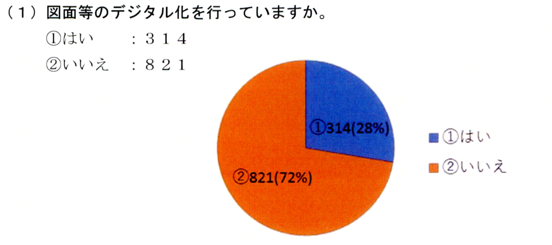 文化庁報告3をまとめる際(2017年11月)に実施されたアンケート(埋蔵文化財専門職員を有する都道府県市町村1,151自治体)でも、図面をデジタル化した自治体は314/1151と3割程度である。その目的は「報告書作成作業等のため」が297/314(複数回答可)とほとんど全てであり、保存や保管を目的とするものでない傾向が明らかである。このため取り込み解像度は360dpi~720dpiに収まるものが大半である。