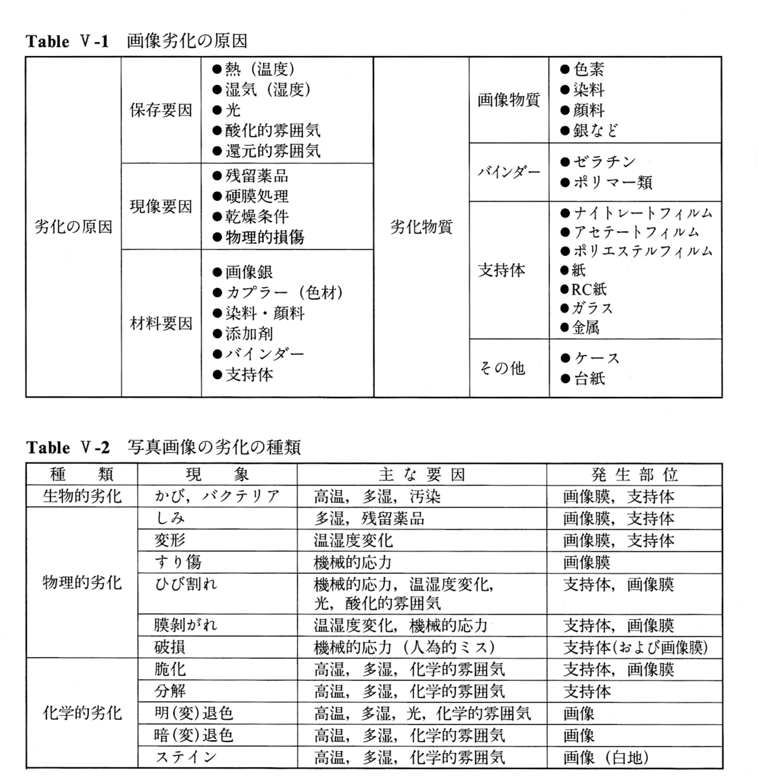 表4_1996_画像劣化の原因と種類_『写真の保存・展示・修復』河野純一