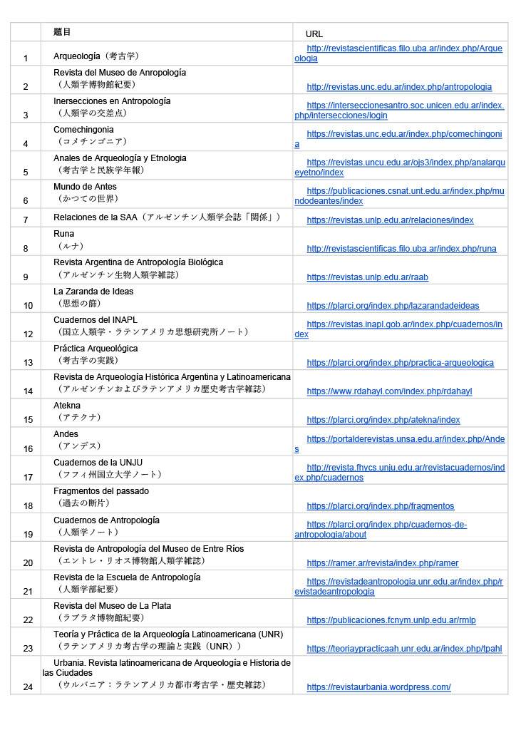 | データ名称 | 表1 アルゼンチンの考古学関連デジタルジャーナル(2024年9月現在) |