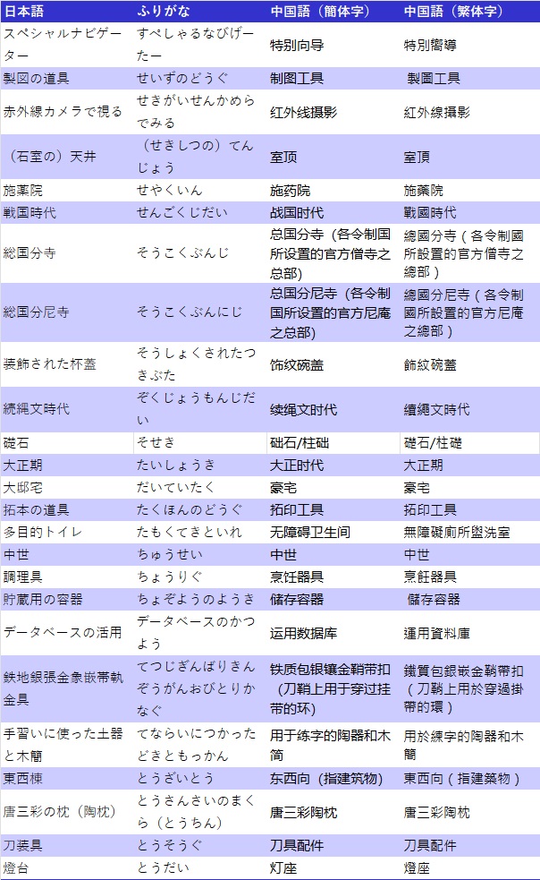 『文化財多言語化研究報告5』に掲載の楊雅琲「文化財関連用語日中対訳集」にて使用した画像類