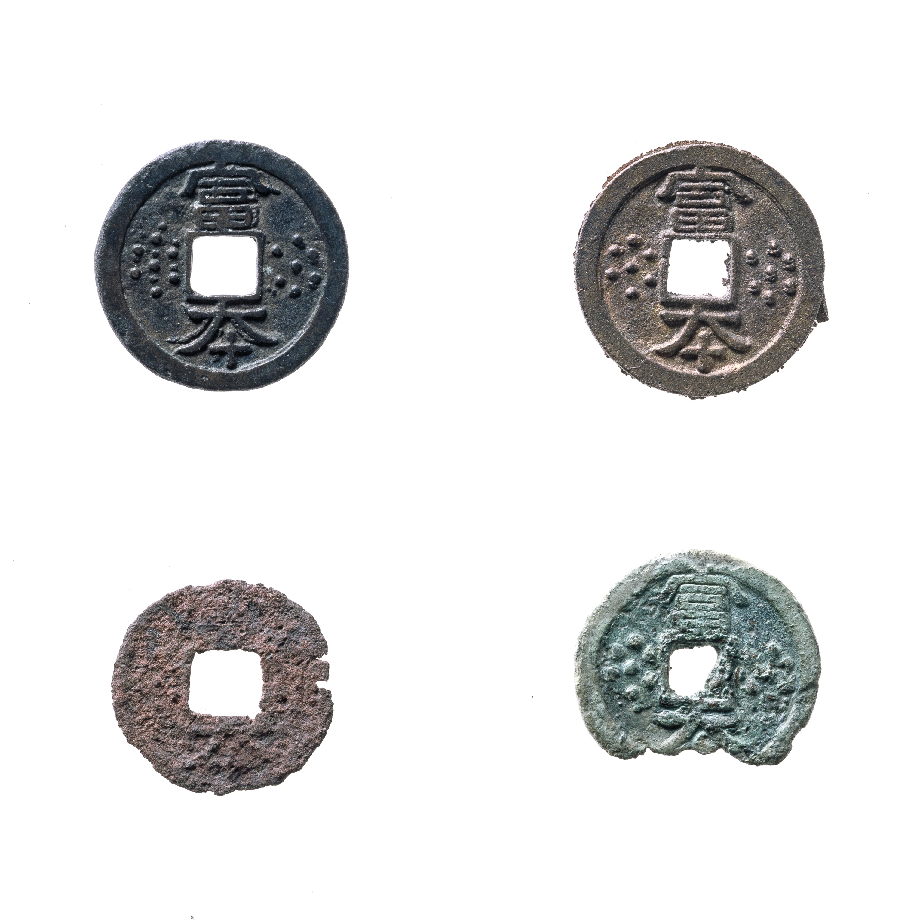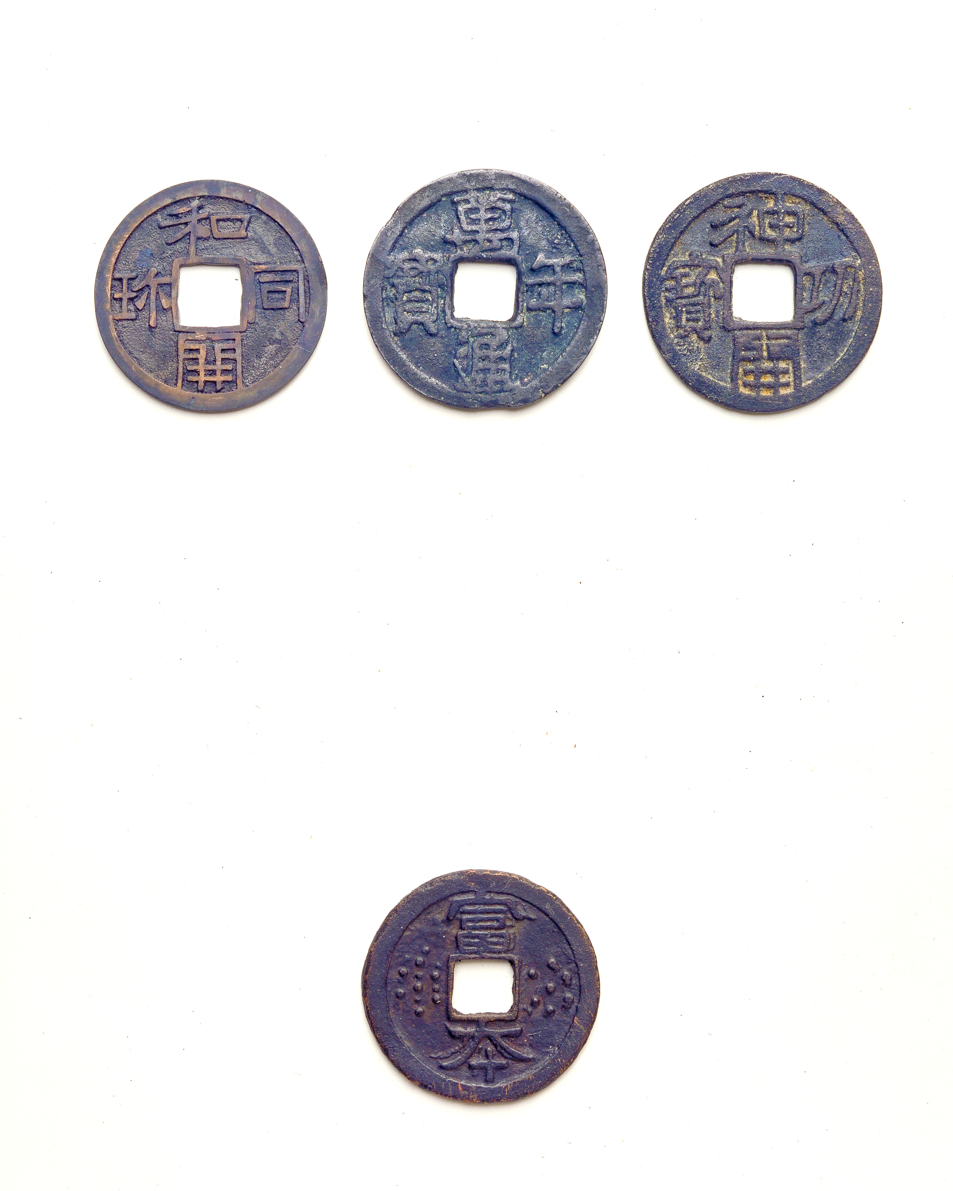 | 概要 | 和同開珎銅銭(上左)萬年通寶(上中)神功開寶(上右)富本銭(下) |