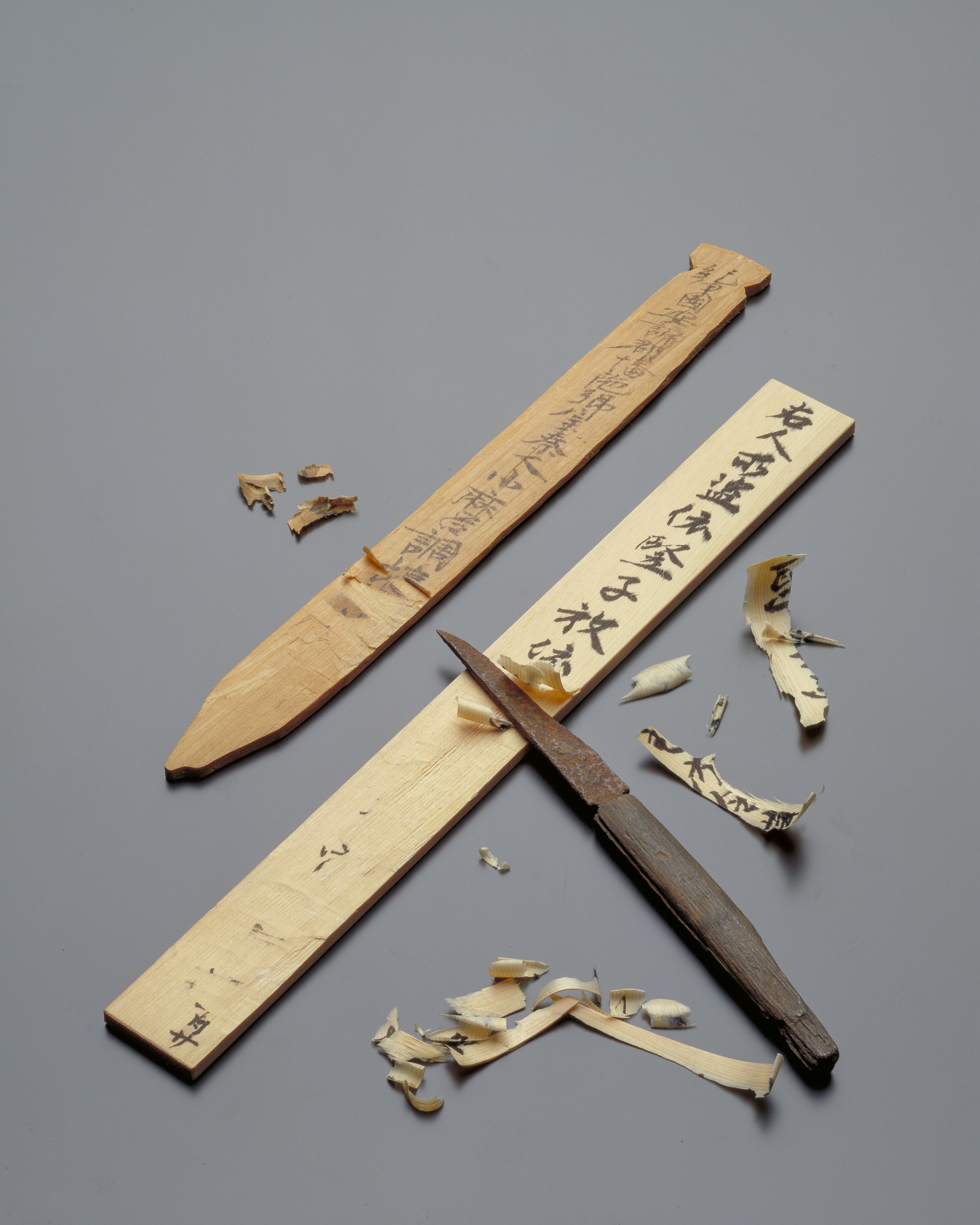| 概要 | 削りかけの木簡 イメージ写真 木簡レプリカ |