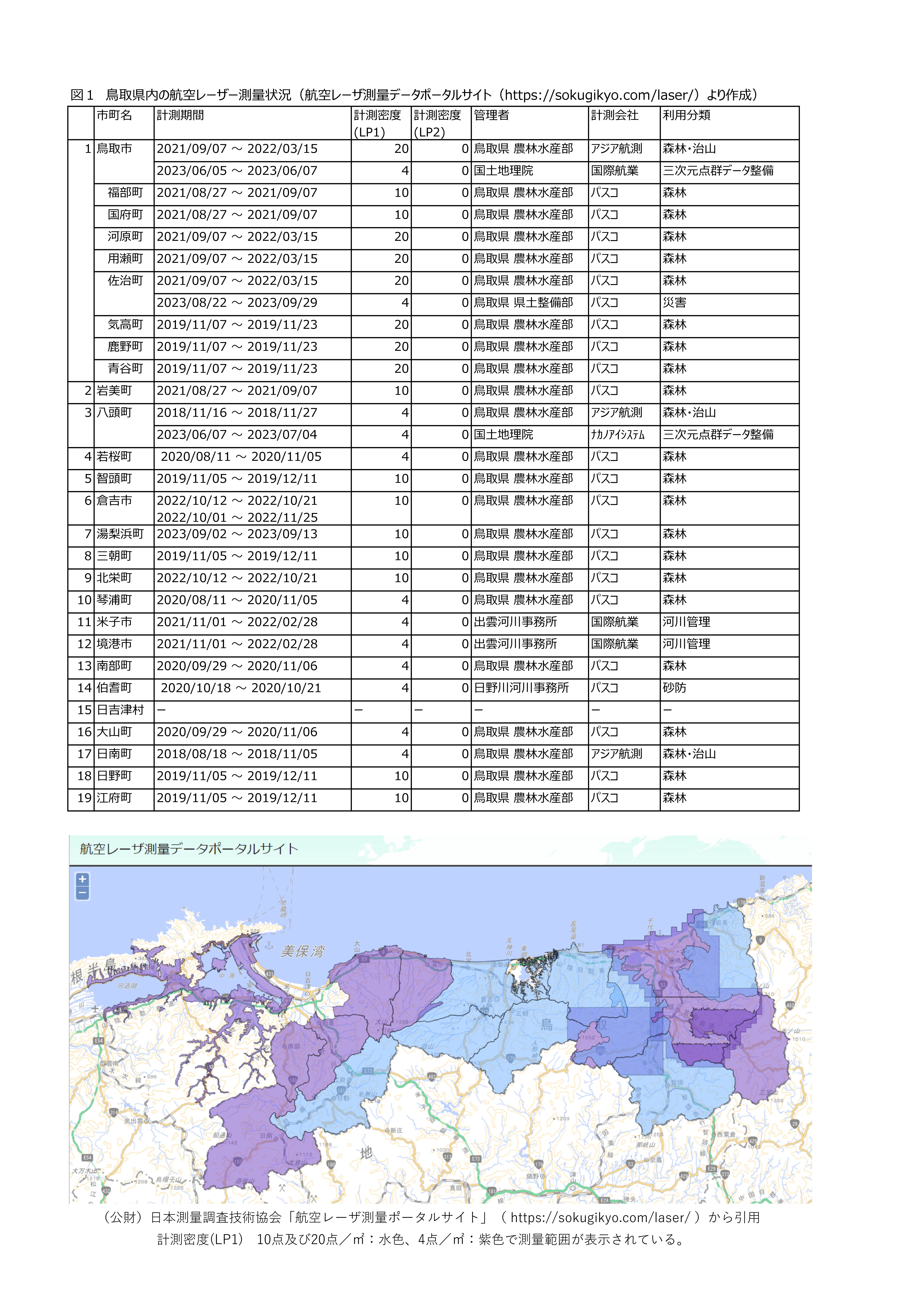 | 英語名称 | 図1 鳥取県内の航空レーザー測量状況 |