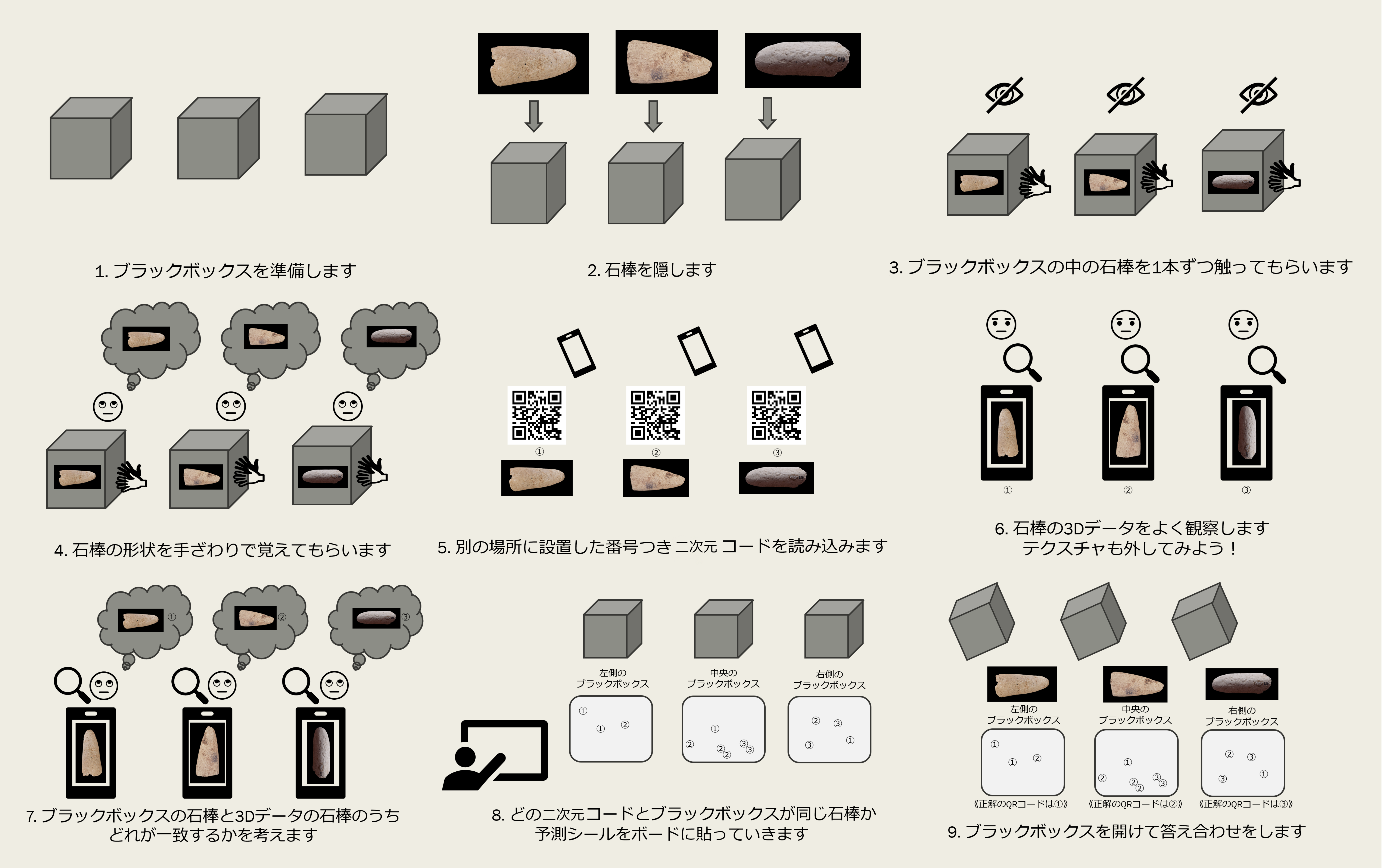 『デジタル技術による文化財情報の記録と利活用7』に掲載の井上隼多・橋本真之介・小林遼香・中嶋大倫・保谷里歩「文化財3Dデータを活用したユニバーサル・ワークショップ「石棒神経衰弱」の挑戦」にて使用した画像類