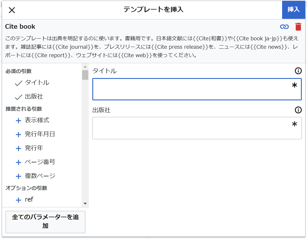 | 英語名称 | 図4参考文献節を「Cite book」テンプレートで記述した状態(ソースモード) |