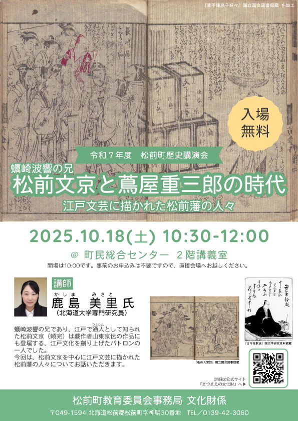 令和年度 松前町歴史講演会「蠣崎波響の兄 松前文京と蔦谷重三郎の時代 -江戸文芸に描かれた松前藩の人々-」