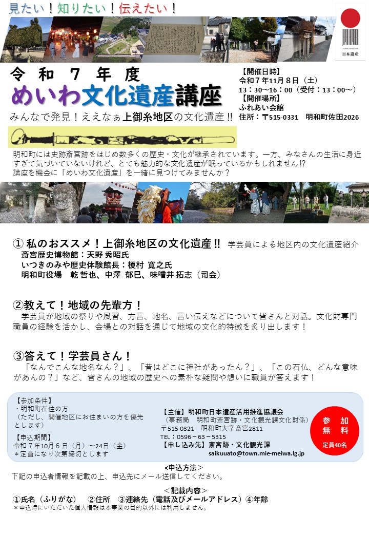 令和7年度めいわ文化遺産講座