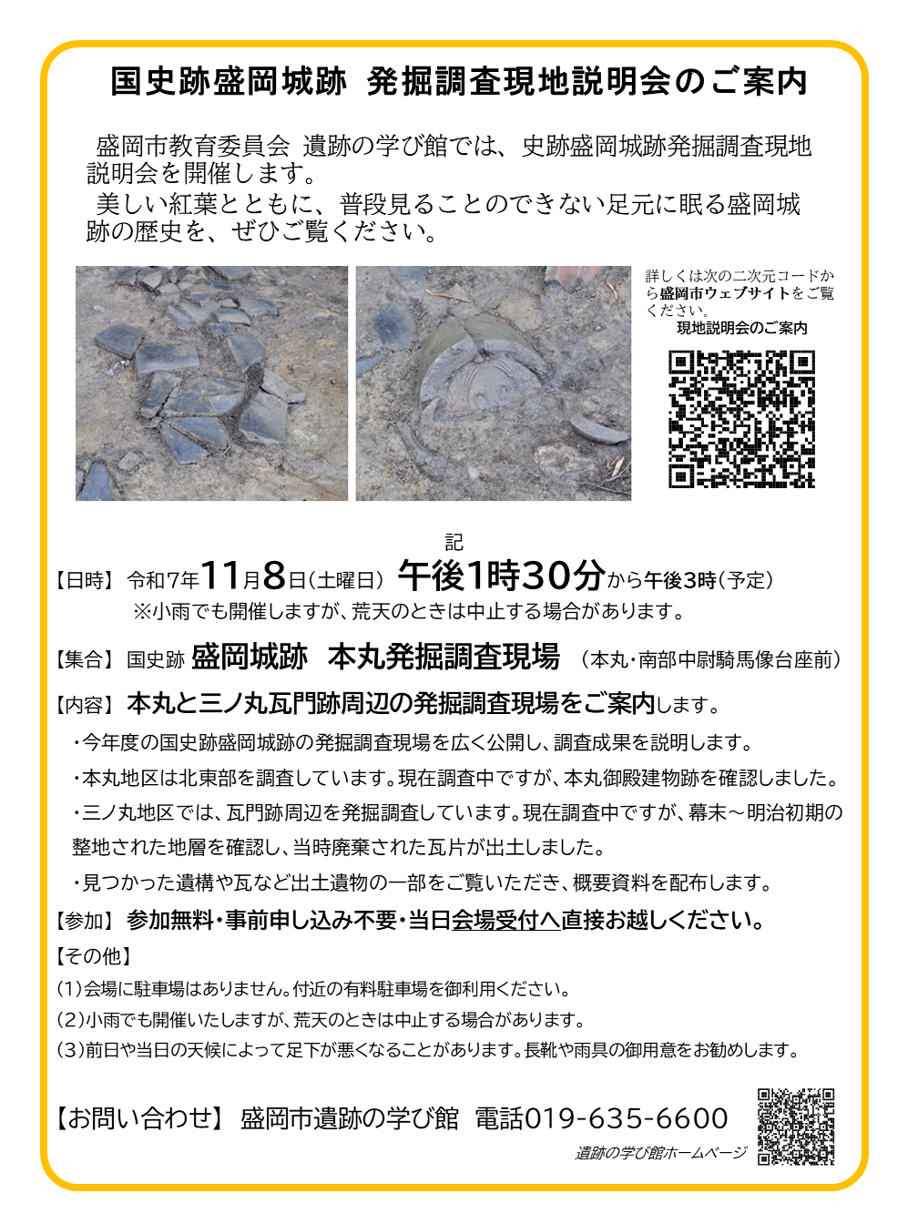 国史跡盛岡城跡発掘調査現地説明会