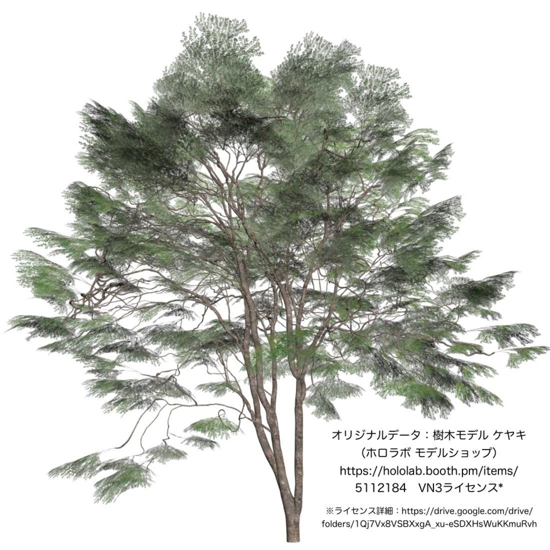 6) オリジナルデータ:樹木モデル ケヤキ(ホロラボ モデルショップ)https://hololab.booth.pm/items/5112184 VN3ライセンス