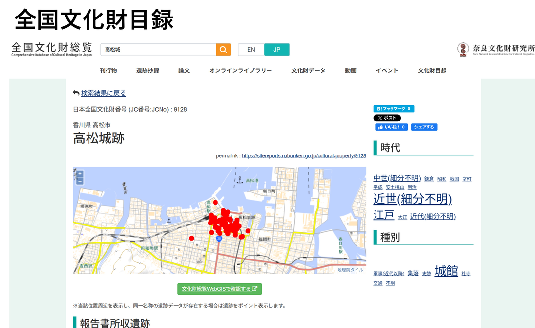 高田祐一「遺跡地図公開の現状と文化財総覧webGIS」『古代寺院3DGIS科研研究集会「遺跡地図GISの現在地」予稿集』 - 全国文化財目録