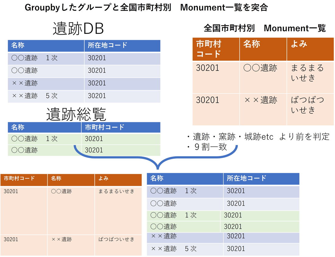 高田祐一「遺跡地図公開の現状と文化財総覧webGIS」『古代寺院3DGIS科研研究集会「遺跡地図GISの現在地」予稿集』 - 遺跡の名寄せ(詳細)