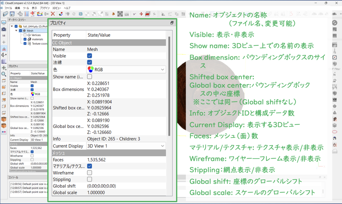 図3 CloudCompareの画面構成