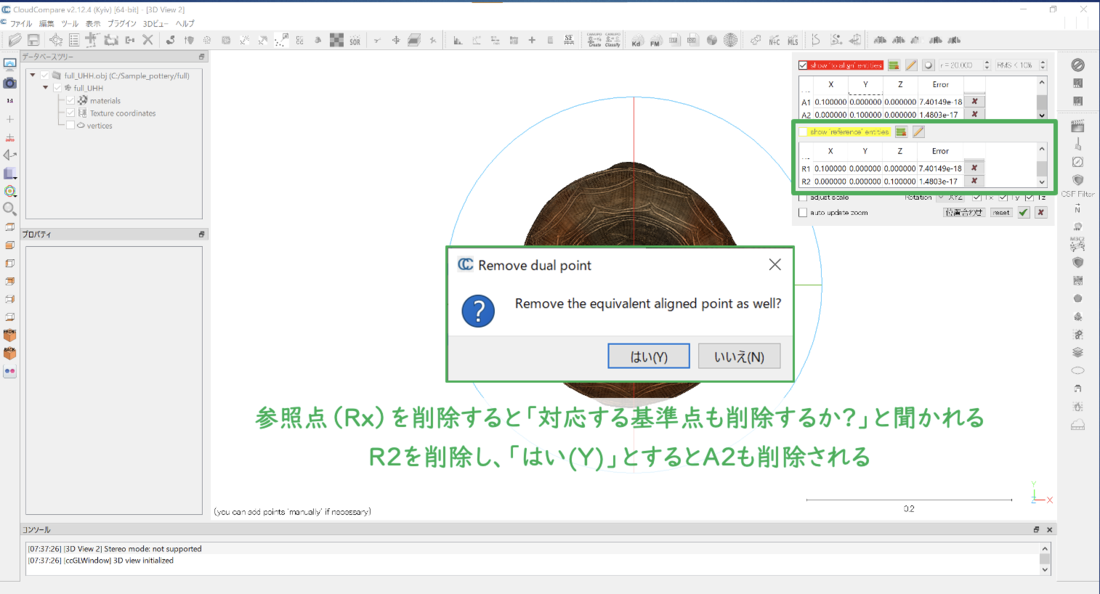 CloudCompareを用いた土器円筒展開図像の作成